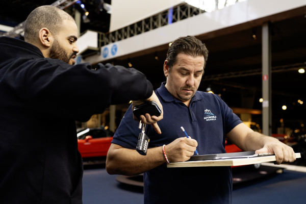 Toon jouw reservering aan de receptie en vraag voor het Autoworld spel in jouw taal.